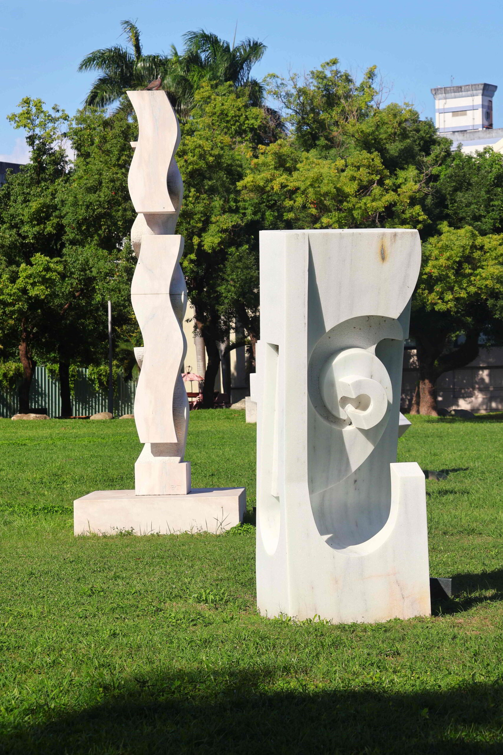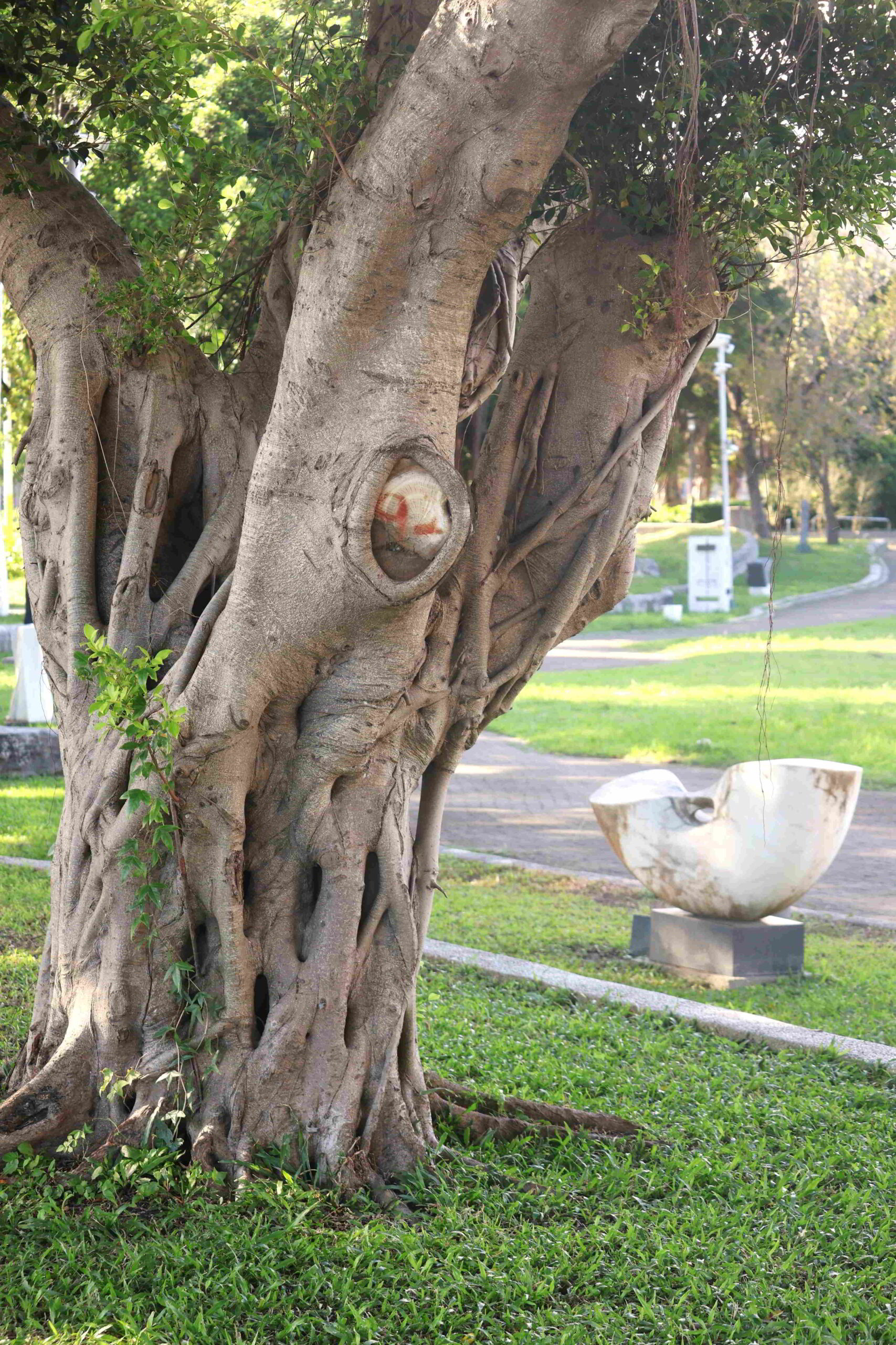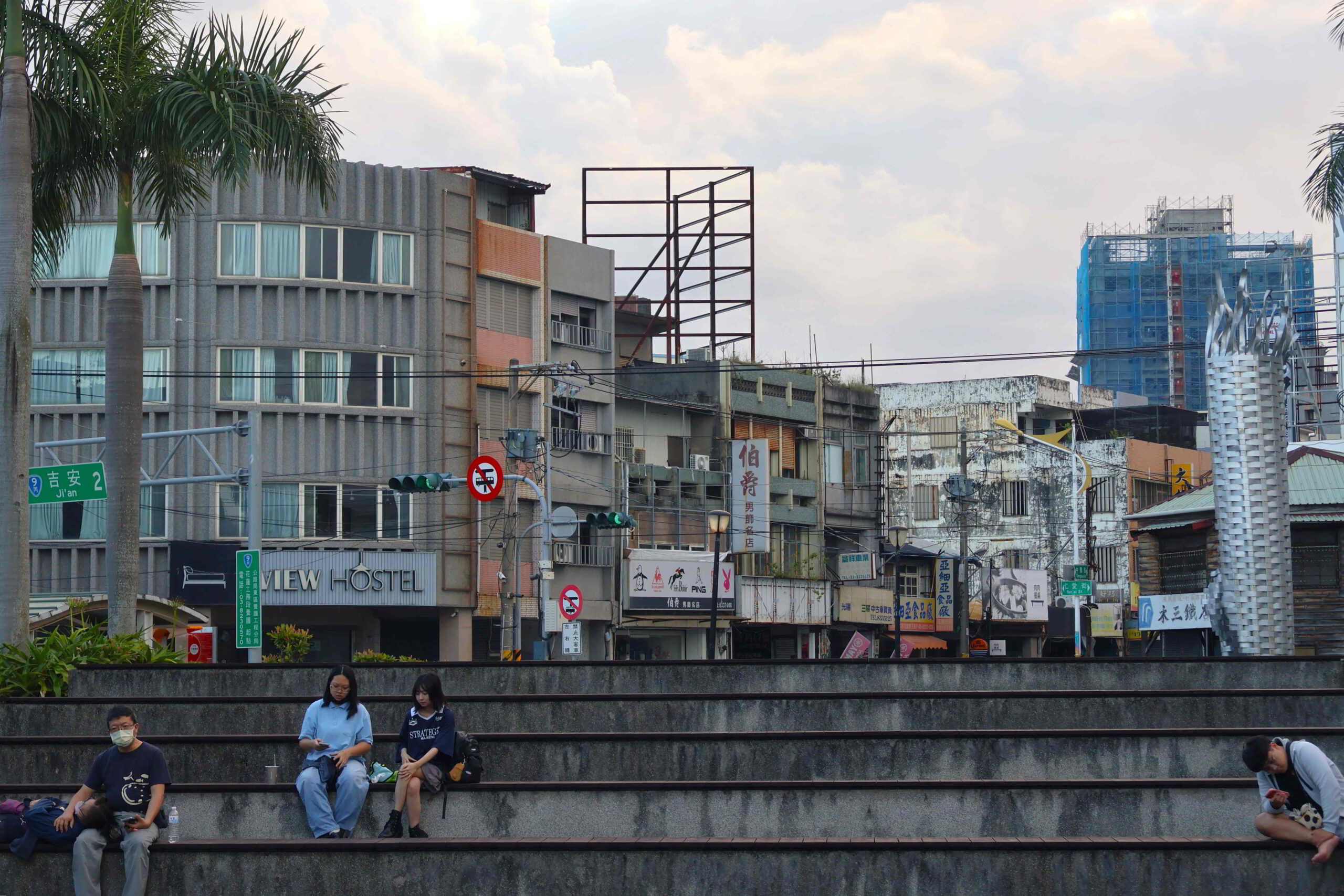 The ribbon of green along the boulevard is the Jiangkouliangsanlang Memorial Park that runs all the way to the Hualien River, which delimits the inner city from the residential areas to the north. The park occupies two different elevations, one alongside the through road that abuts the sculpture museum, and a lower part that borders the port facilities. Although the lower level is wider, with paths weaving through a forest compound, I want to remain on the upper level to avoid having to climb back up in the heat.