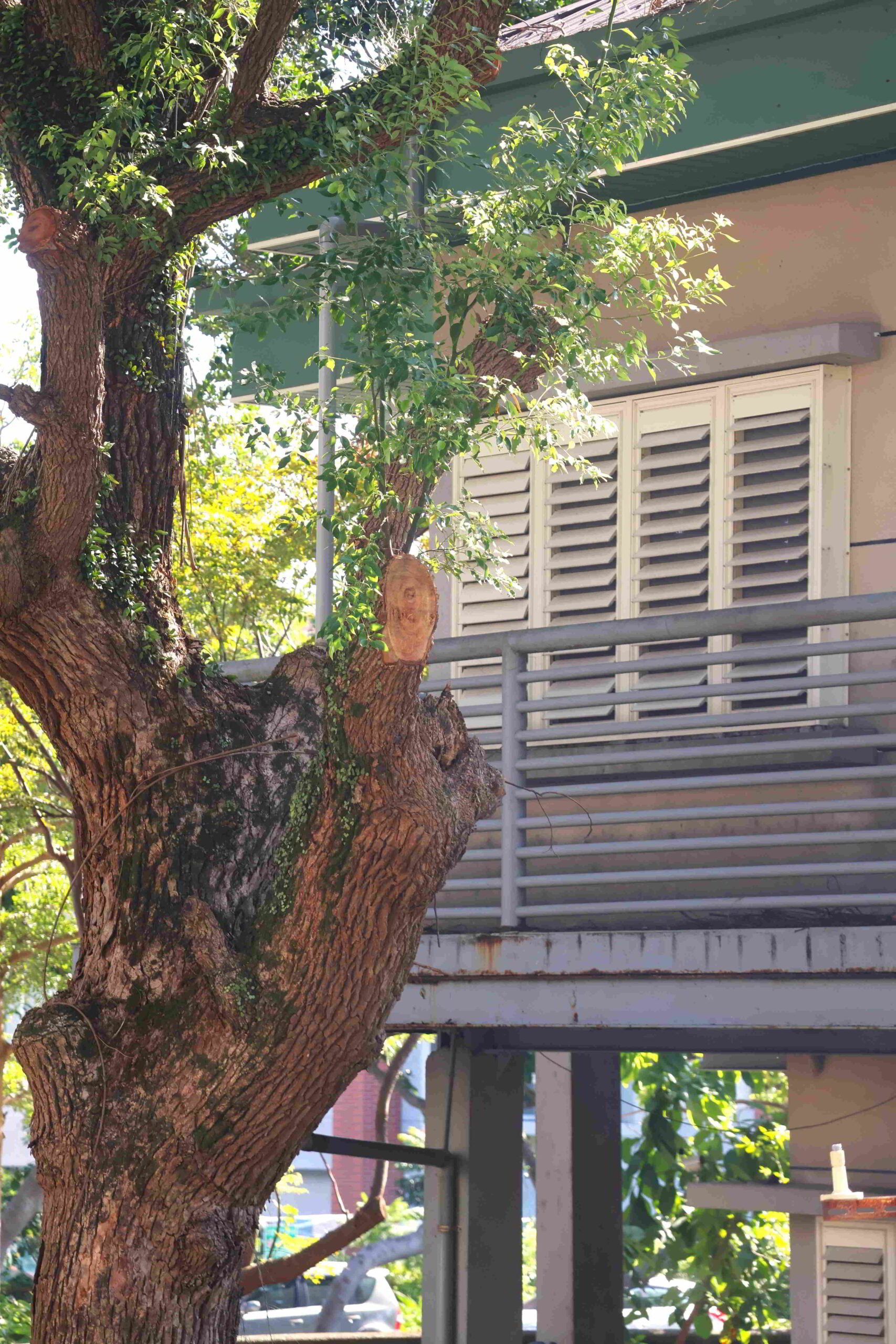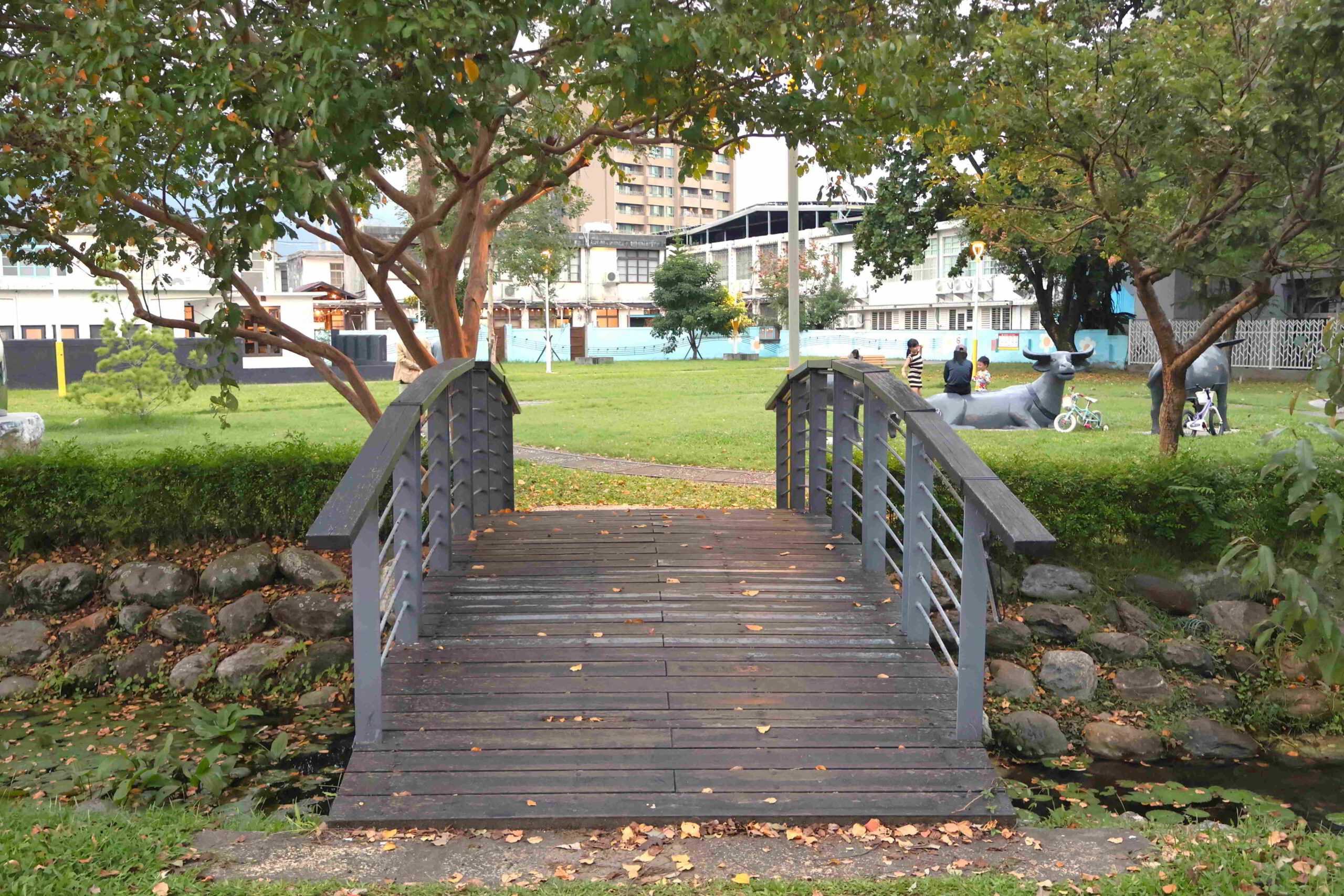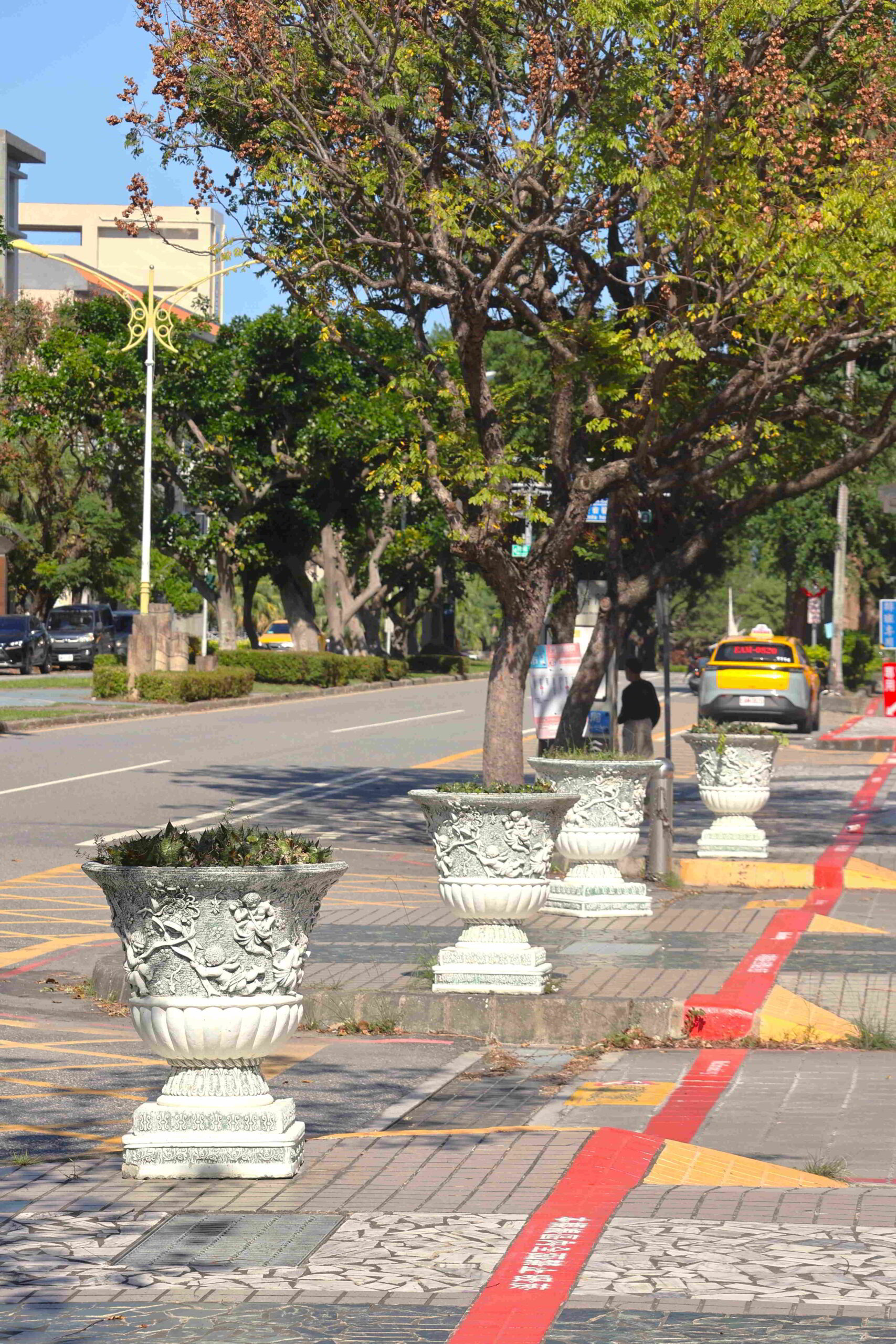 The ribbon of green along the boulevard is the Jiangkouliangsanlang Memorial Park that runs all the way to the Hualien River, which delimits the inner city from the residential areas to the north. The park occupies two different elevations, one alongside the through road that abuts the sculpture museum, and a lower part that borders the port facilities. Although the lower level is wider, with paths weaving through a forest compound, I want to remain on the upper level to avoid having to climb back up in the heat.