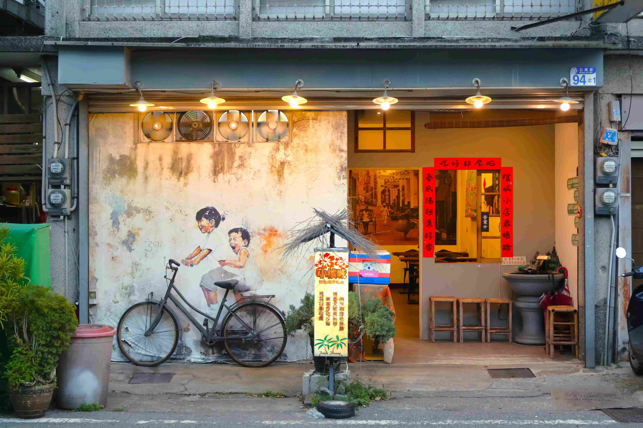 I am not sure what is involved in the cultural centre I am about to visit, but how about a coffee prior to visiting the space. Over the course of a few blocks to the south, I can see that I am in a very trendy district, the modest shophouse storefronts inflected with nuanced embellishments, lettering with a particular font, neon signs, unusually-sized window and door sashes, artwork, potted shrubs, large windows exposing fashionably arranged interiors, and so on, the narrow roadways lined with parked scooters and cars.