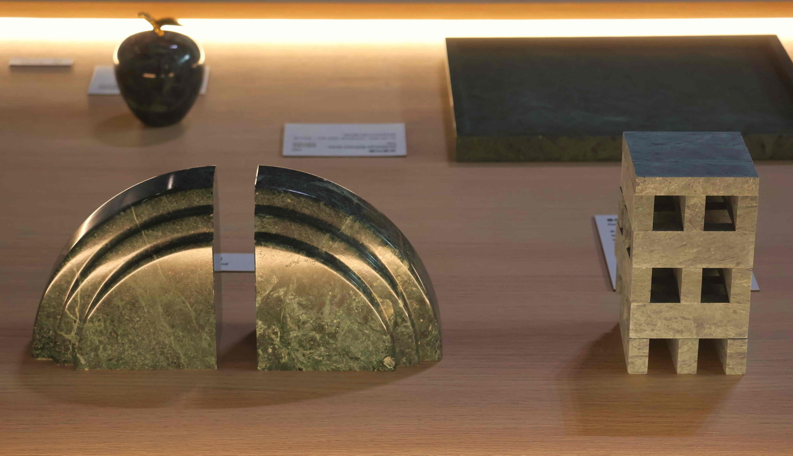 The museum is next door to the hospital, the grounds punctuated by large sculptures; inside, a very stylish and tasteful exhibition of the country’s rock treasures. I had expected the museum to focus on artistic sculptures, but instead it centers on the country’s geology and the evolution of the stone processing industry, the displays providing examples of artistic applications of the various types of rock, mostly items of domestic practicality, such as coasters, trays, dishes, lamps, and so on, but with a degree of stylishness I would not have expected.