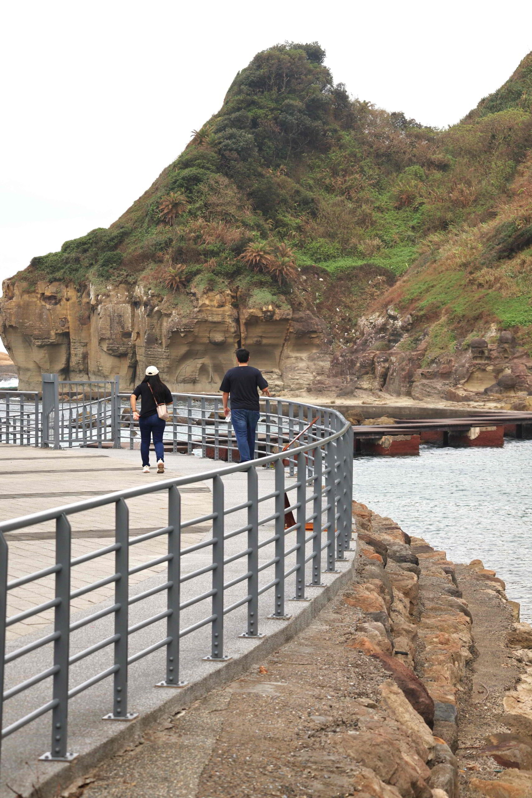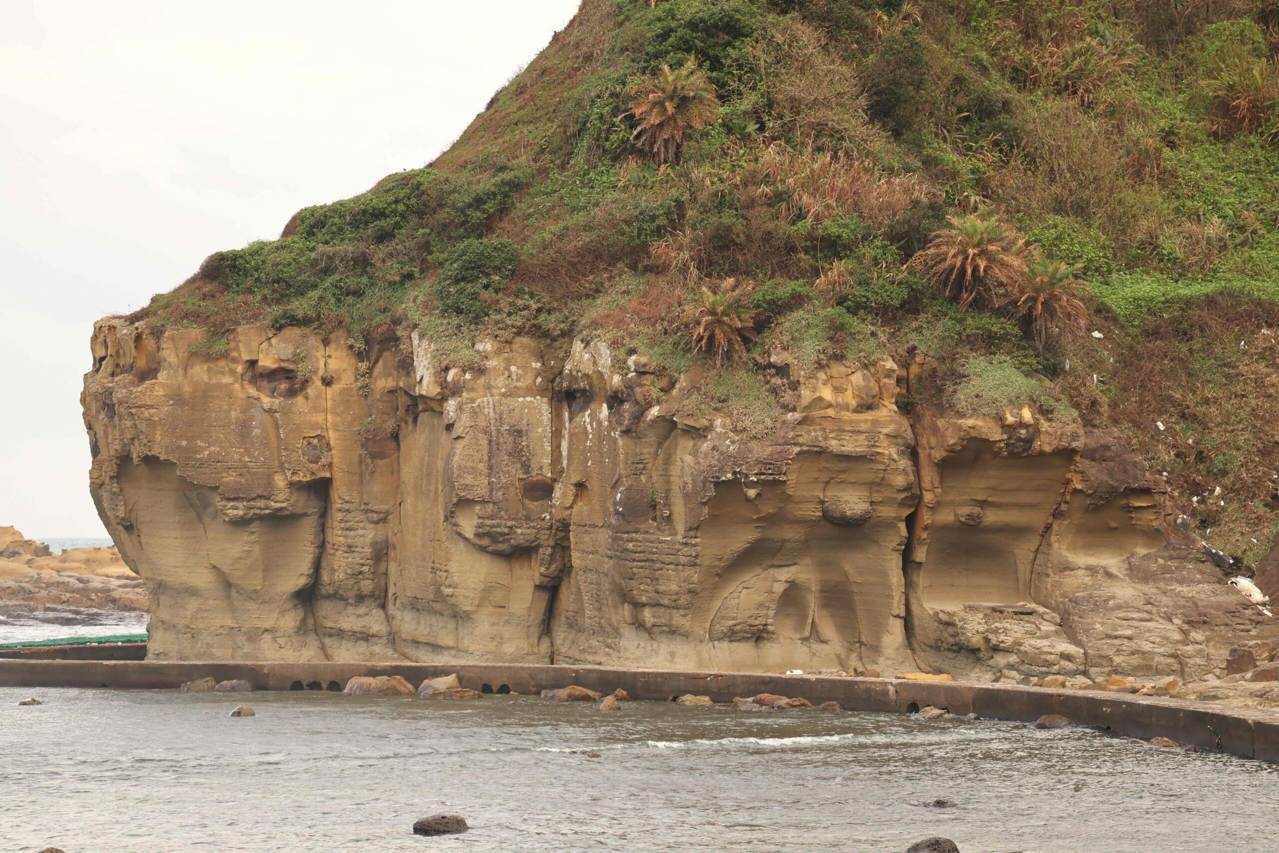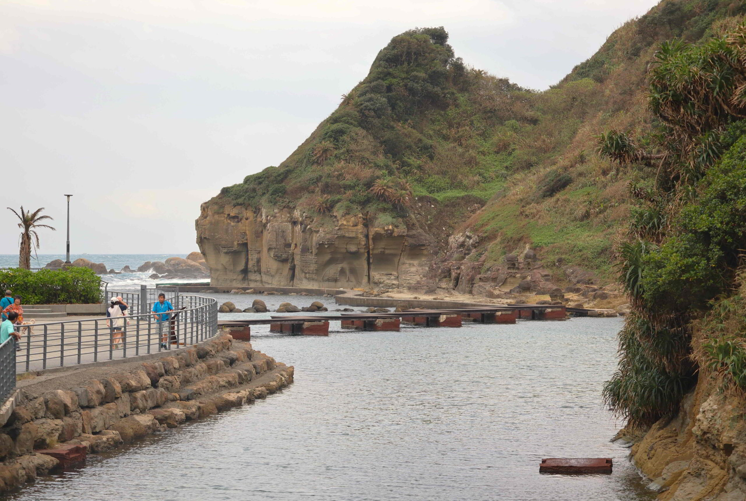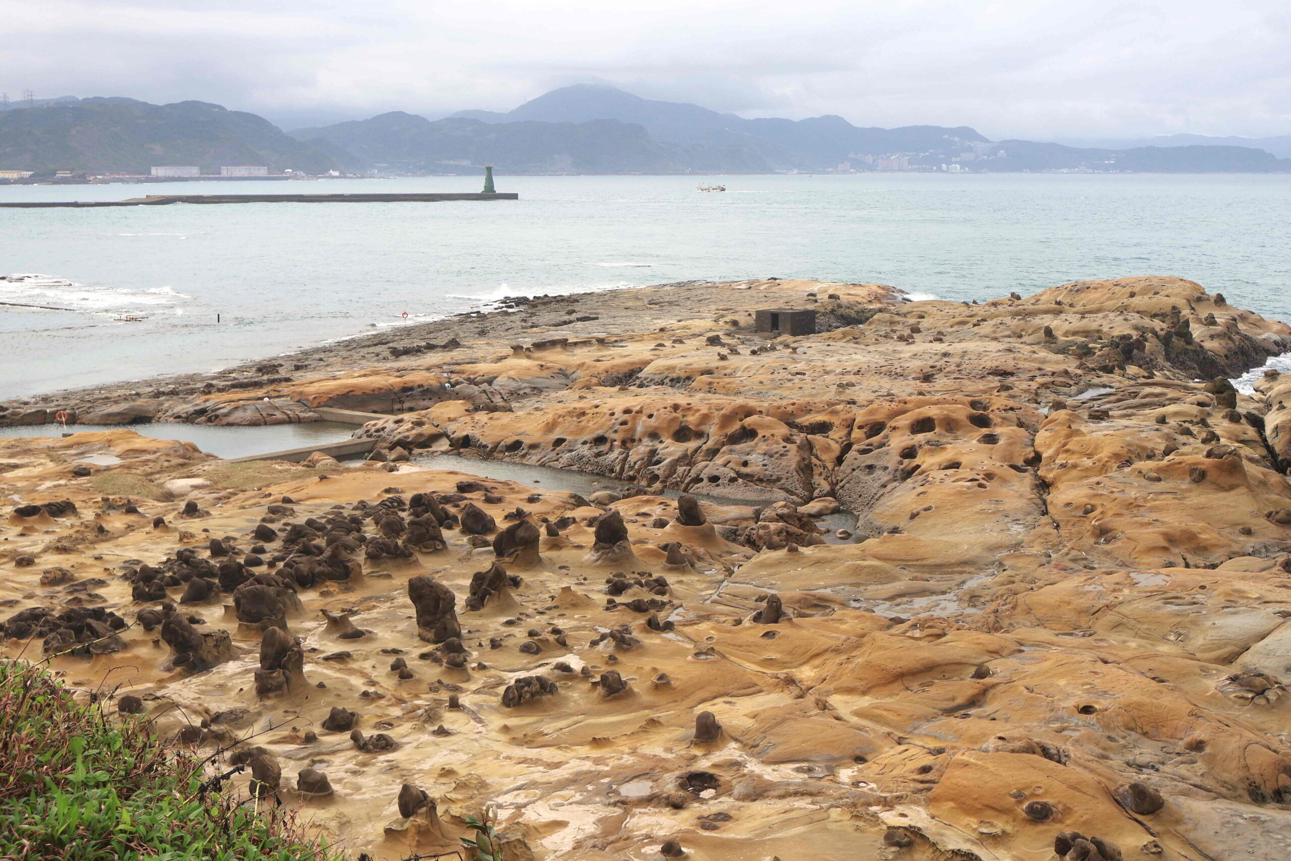 The geopark is somewhere quite unexpected, the large terrain of the park with manicured lawns, impeccably-ordered palms lining the flagstone-paved walkways that run along the waterfront, with breathtaking views of the shimmering gunmetal sea, the undulating profile of hills lining the coast, and the lengthy Keelung Baideng Wharf culminating in a squat, unadorned lighthouse.