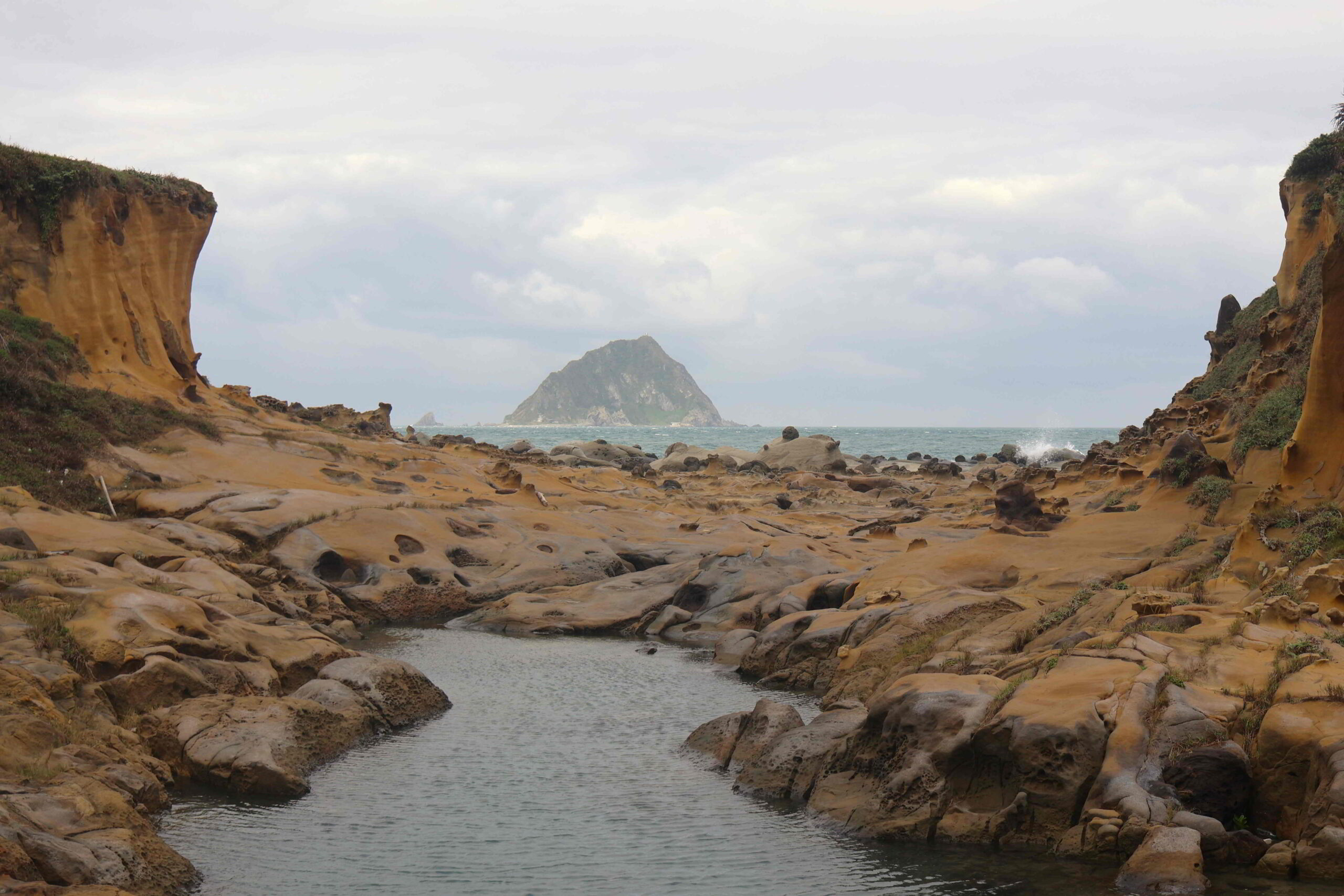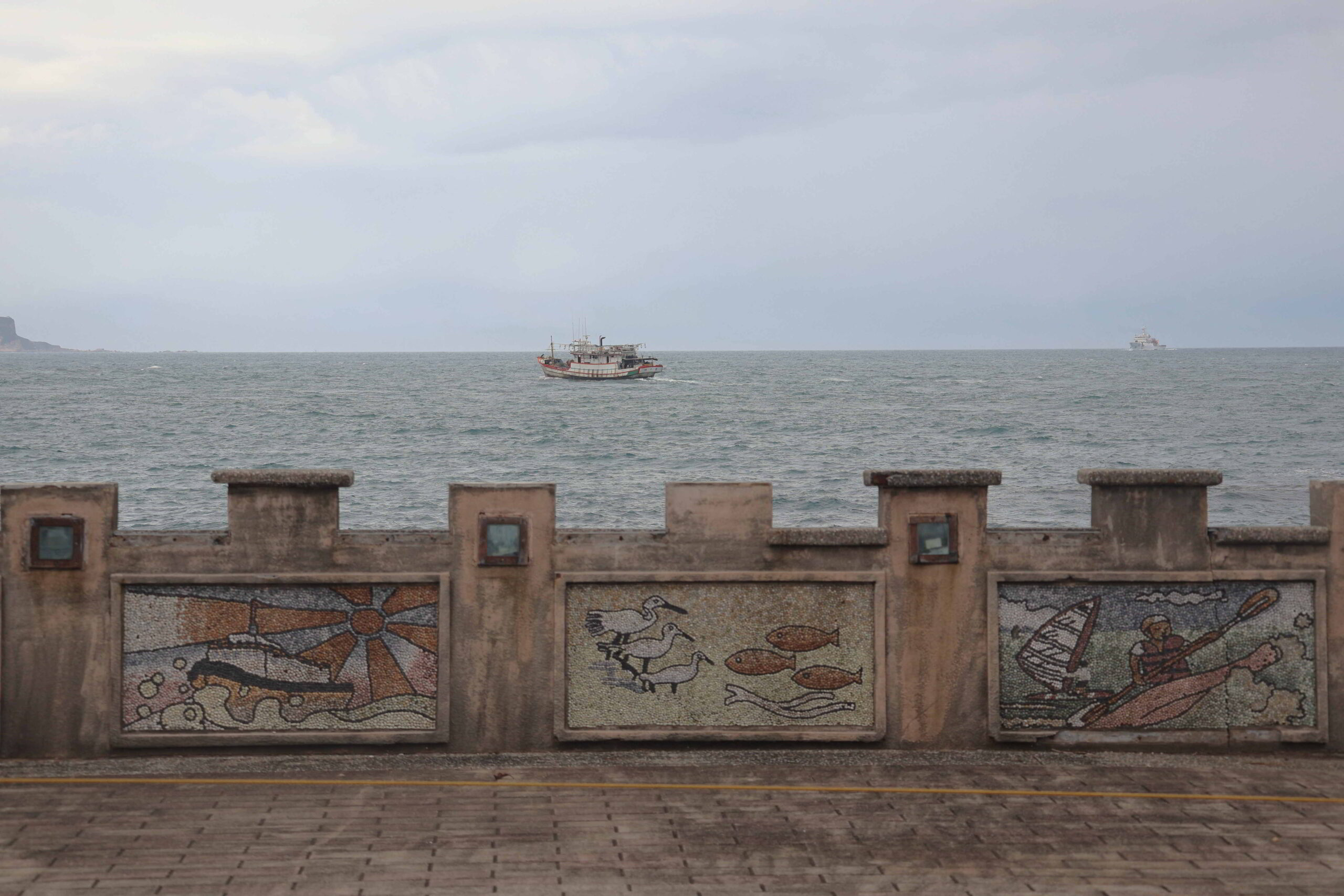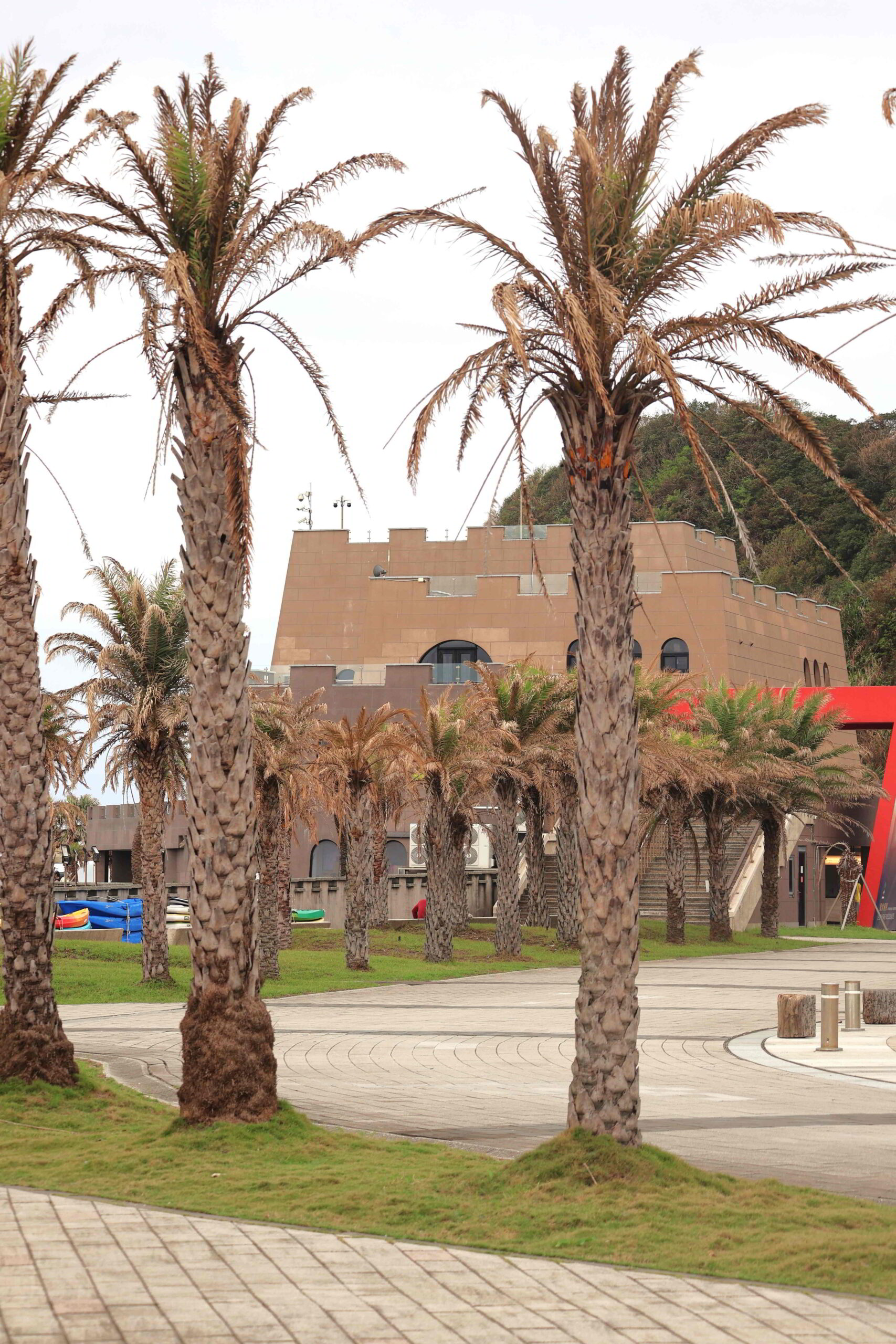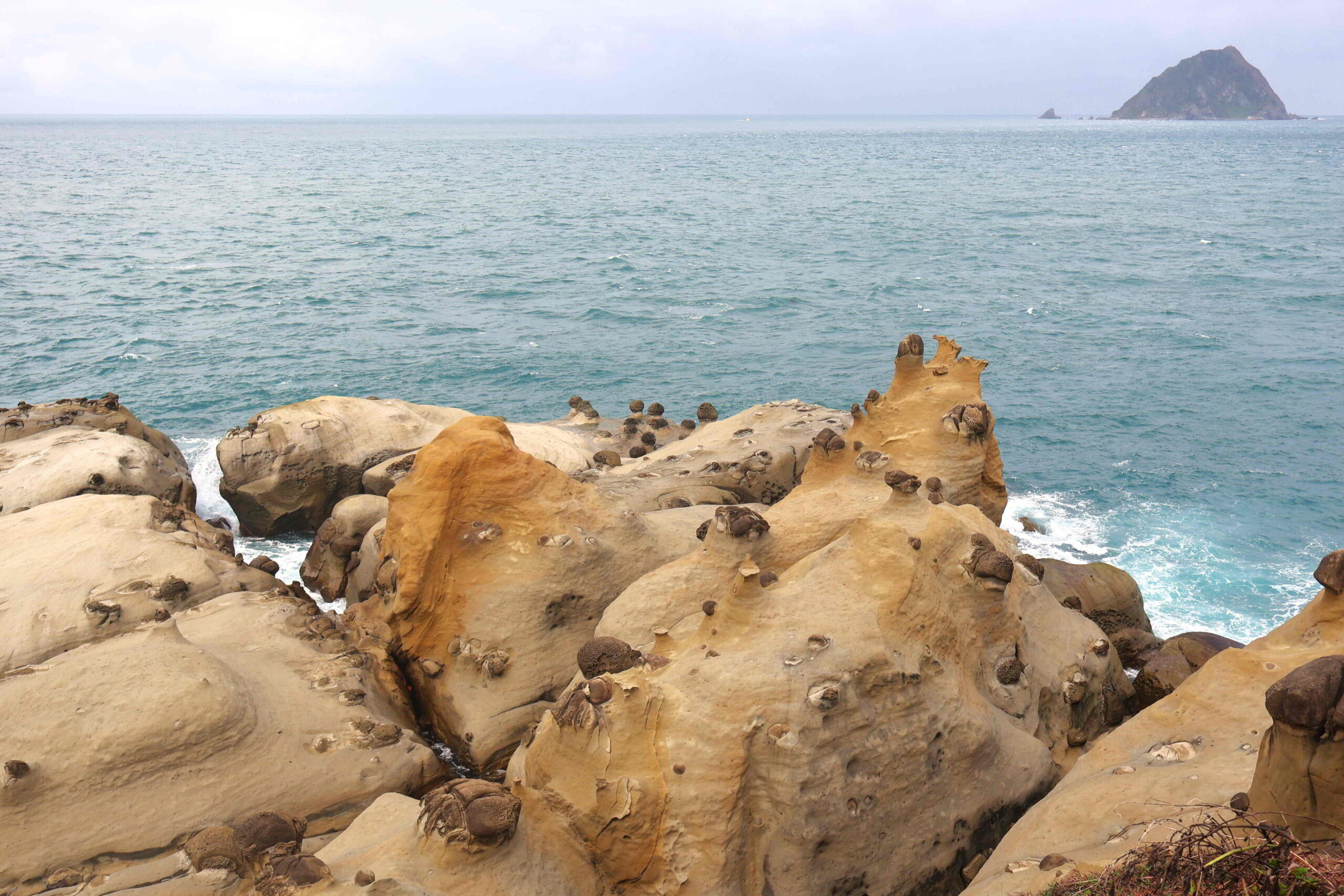The geopark is somewhere quite unexpected, the large terrain of the park with manicured lawns, impeccably-ordered palms lining the flagstone-paved walkways that run along the waterfront, with breathtaking views of the shimmering gunmetal sea, the undulating profile of hills lining the coast, and the lengthy Keelung Baideng Wharf culminating in a squat, unadorned lighthouse.