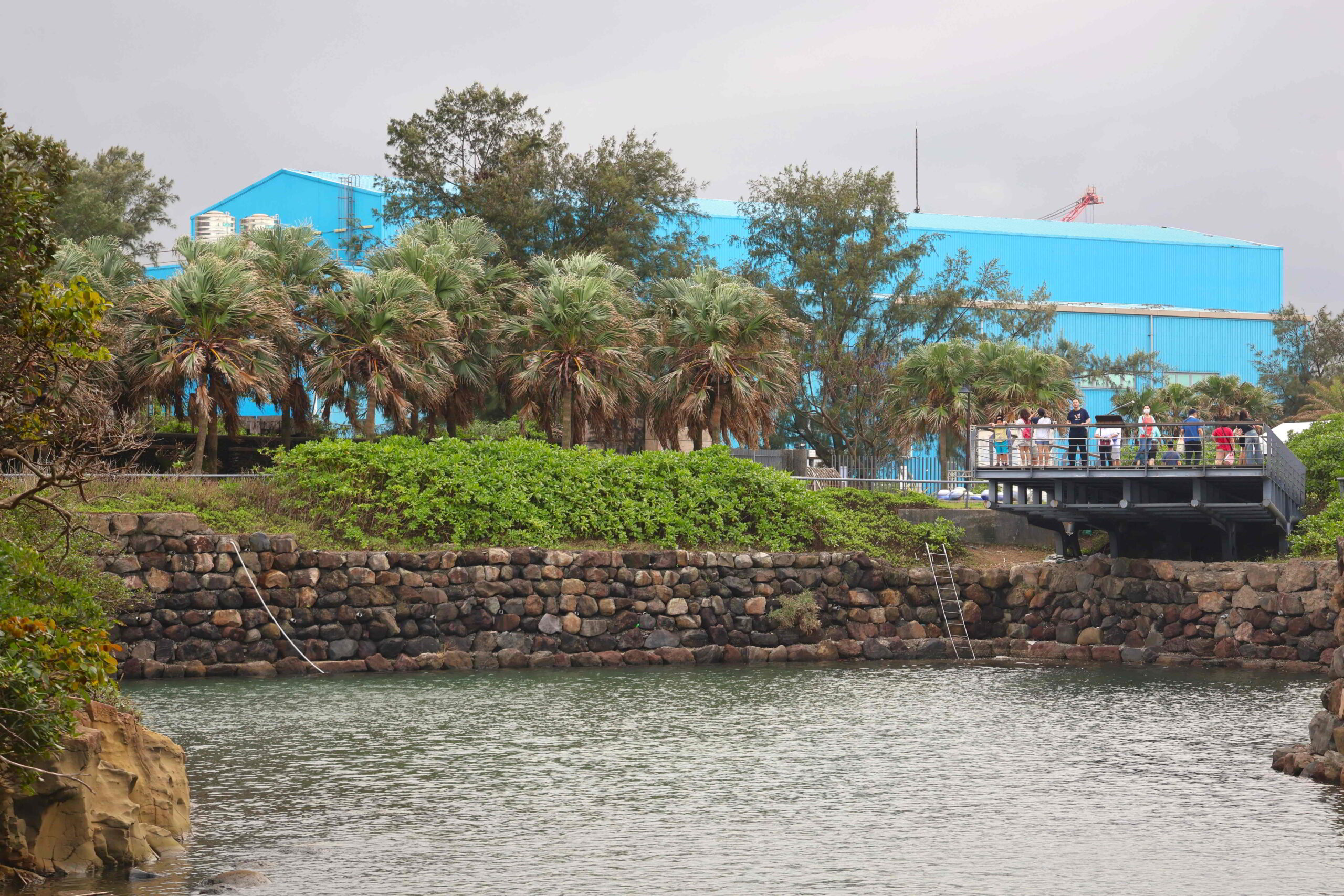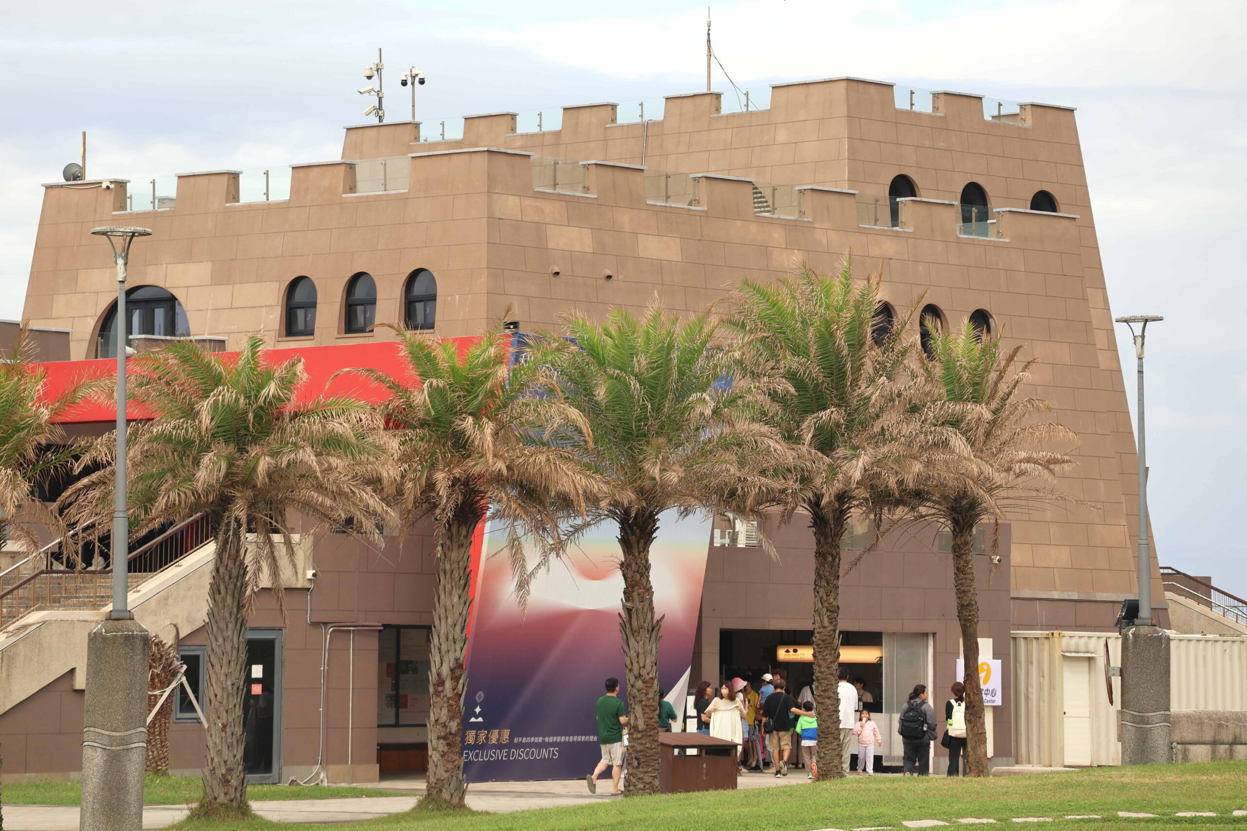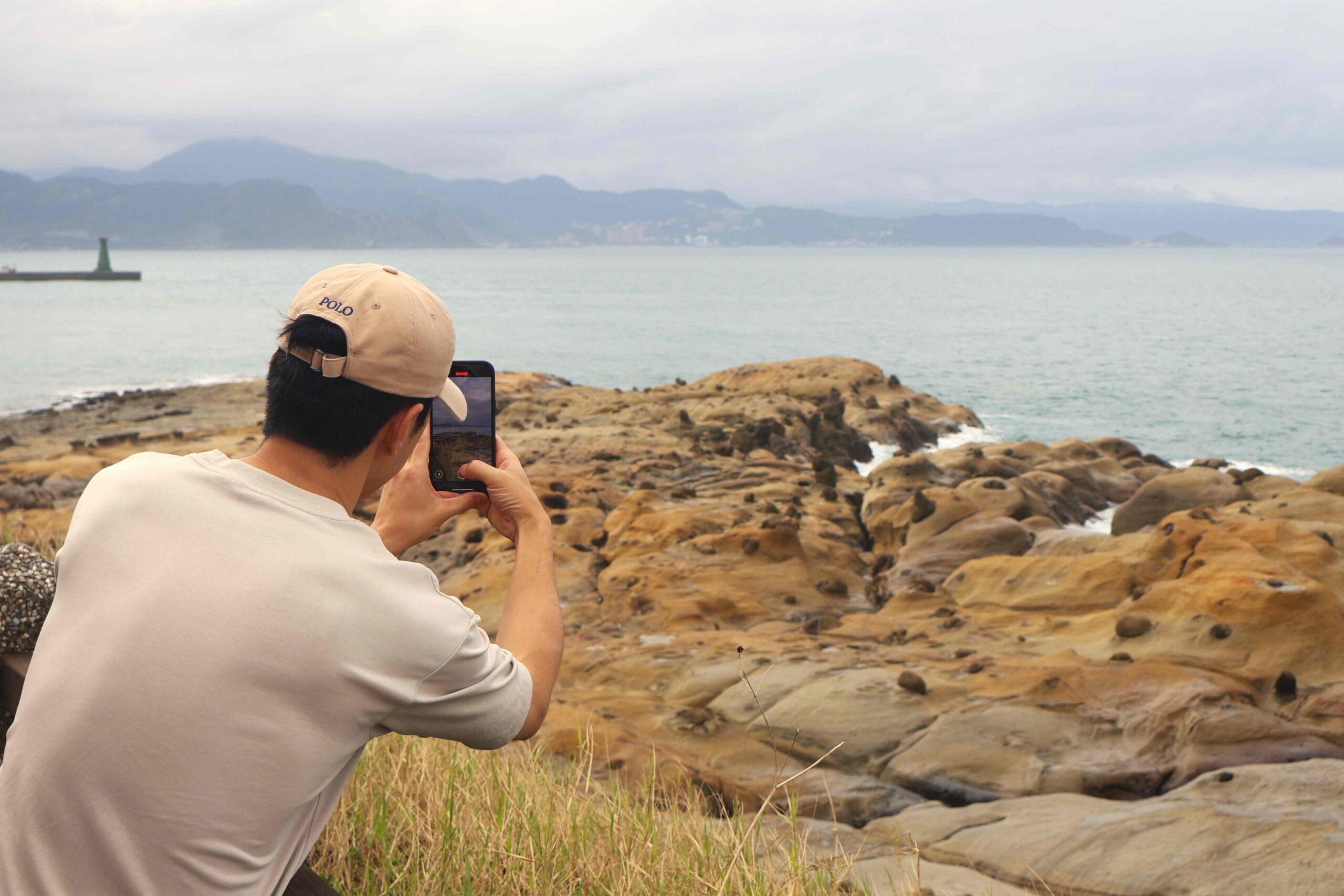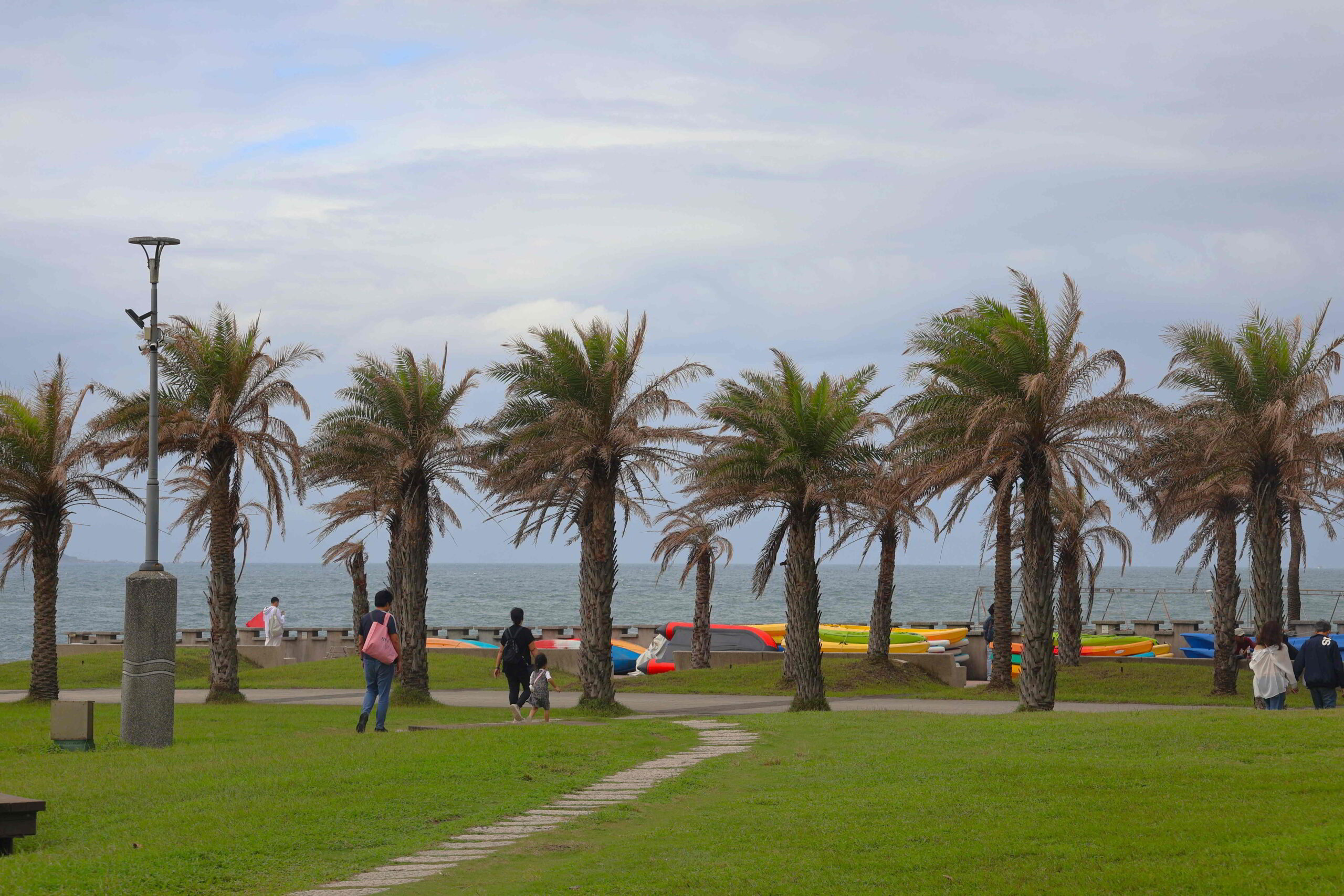 The geopark is somewhere quite unexpected, the large terrain of the park with manicured lawns, impeccably-ordered palms lining the flagstone-paved walkways that run along the waterfront, with breathtaking views of the shimmering gunmetal sea, the undulating profile of hills lining the coast, and the lengthy Keelung Baideng Wharf culminating in a squat, unadorned lighthouse.