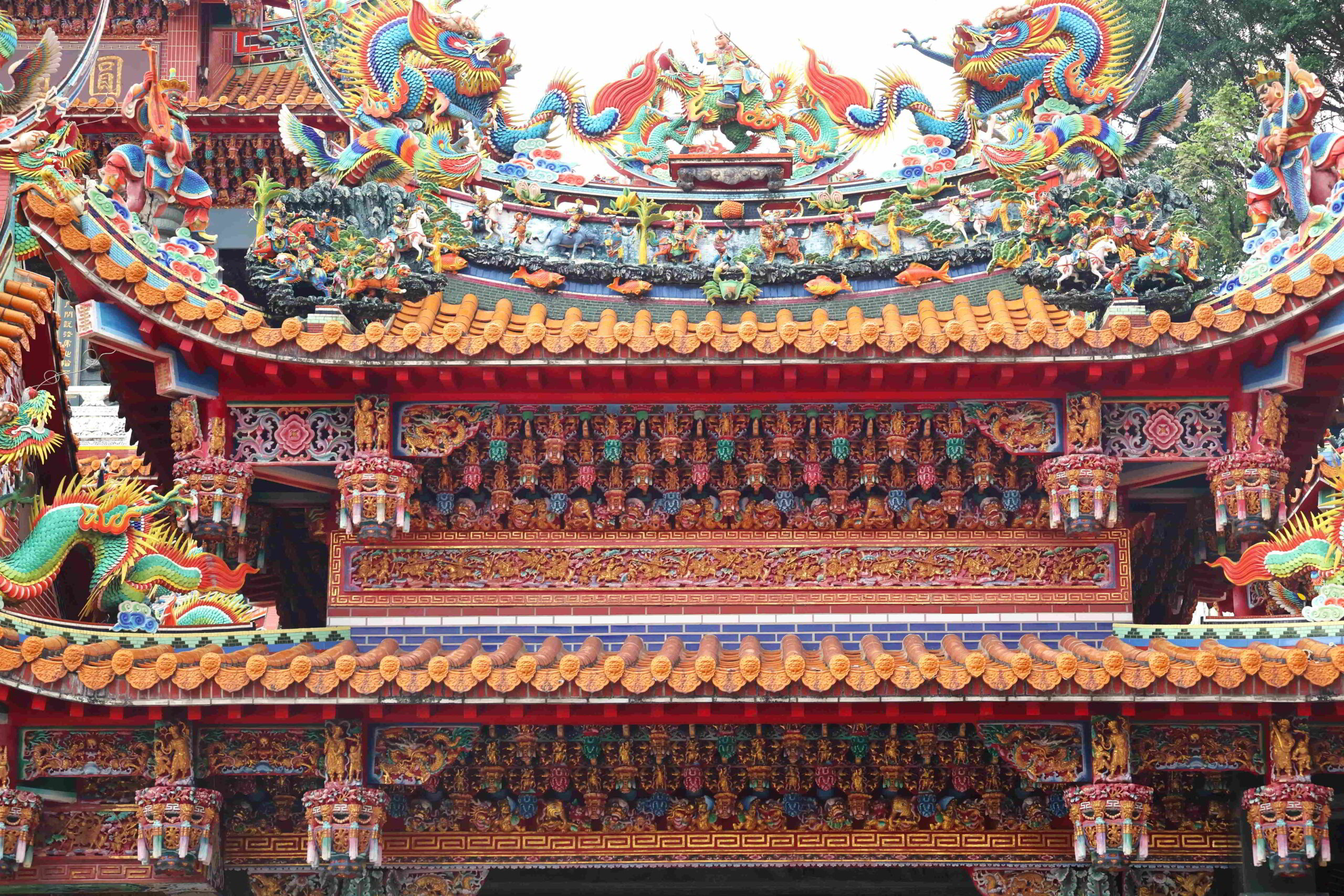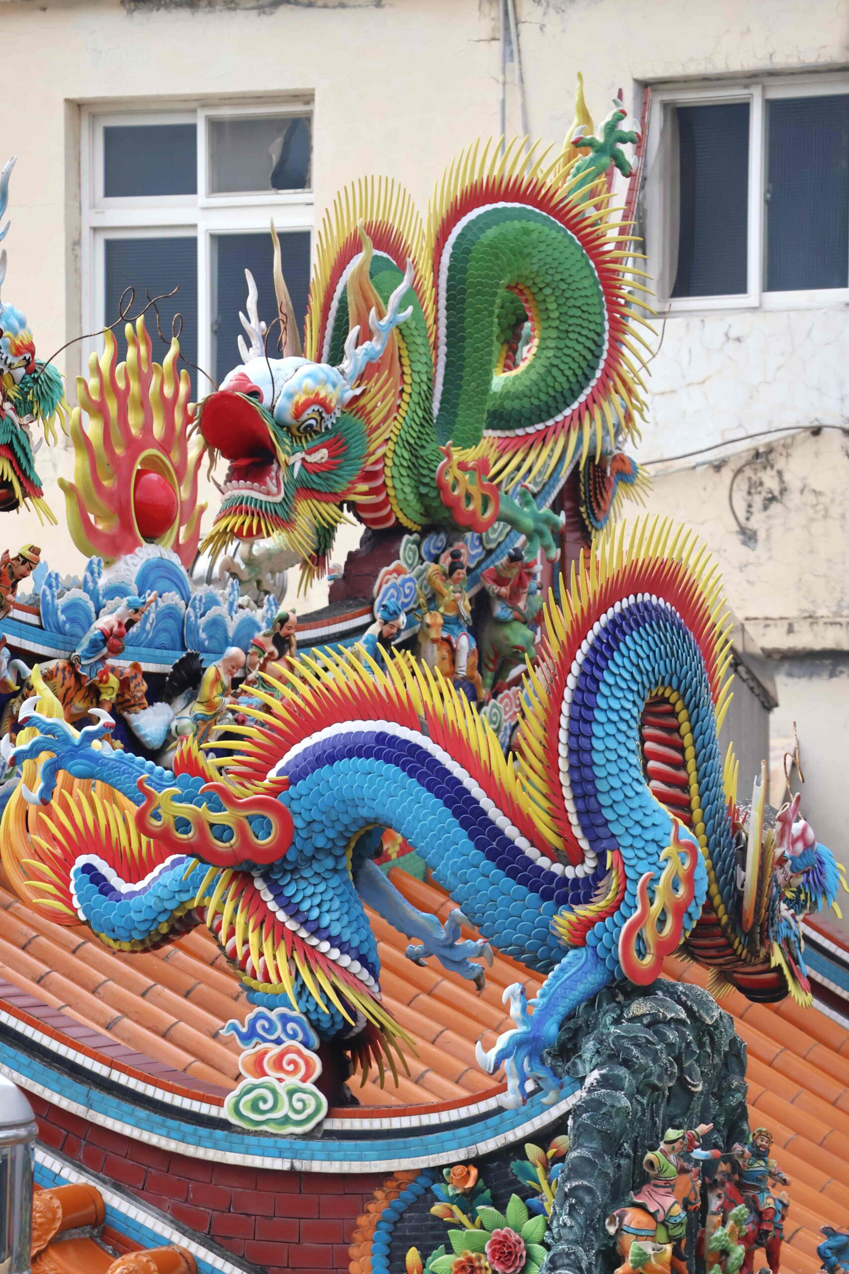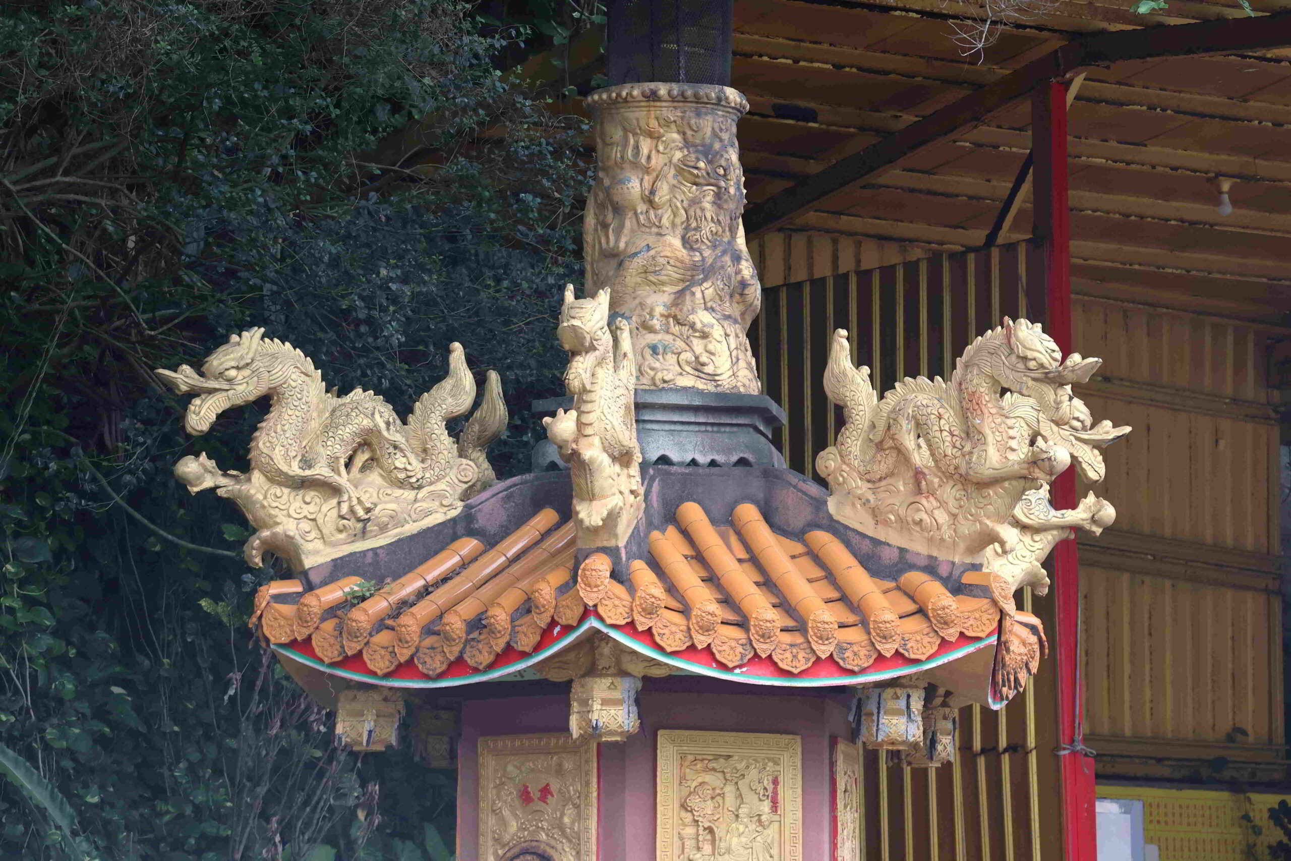 I had meant to visit the Tianxian Temple, but am not in the mood for climbing up a steep slope in the approaching dusk, and will have to contend myself with its diminutive cousin, the Tian Ho temple, although in the end the Taoist temples all look the same, their gates, double-eaved roofs, the roof ridges busy with colourful sculptural work, primarily dragons, the elaborately-carved dragon pillars, the densely-worked soffit area of the shrines, the overarching takeaway one of being completely overwrought.