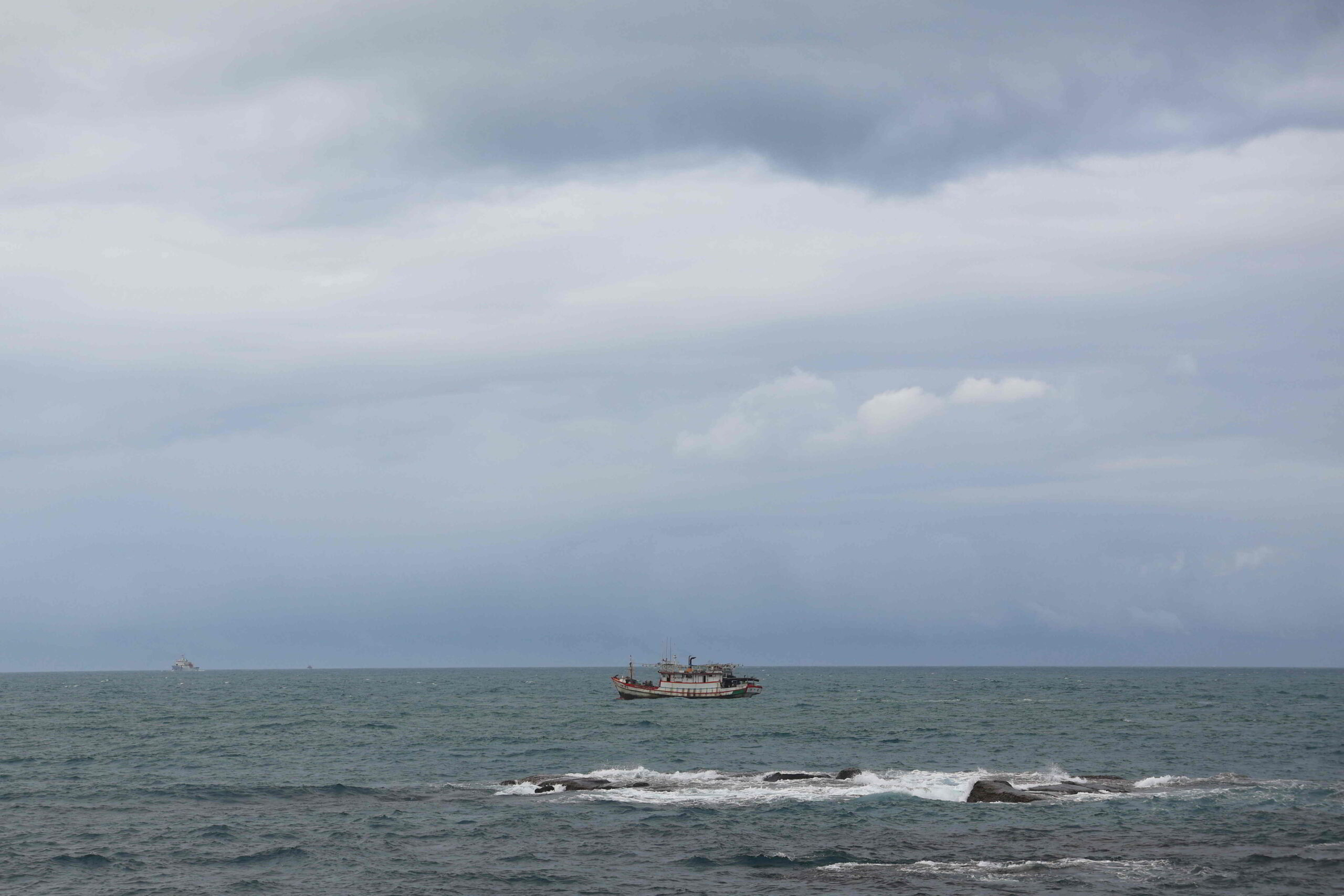 The bus travels through the dense residential and commercial real estate clustered along the east side of the port, then weaves through a dense tapestry of characteristic domestic architecture, the colourful cranes of the port at times visible overhead. Following the lengthy journey, we reach the bridge to the island, and a visual playing field opens up, a dense carpet of recreational and commercial vessels berthed near the shoreline, a row of coloured houses arrayed along the waterfront across from the bridge, the gargantuan geometric cranes draped in brilliant colours on the horizon, and scattered men seated attentively along the edge of the piers with their outstretched fishing rods.