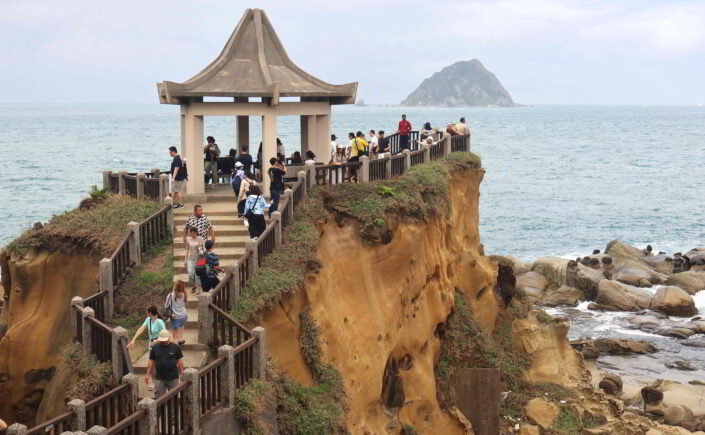 I make my way slowly to the gazebo, taking more and more pictures, then leave the raised promontory again to the newly arriving masses of tourists. I hadn’t expected the visit to the geopark to be that spectacular, but it has been, in fact much more impressive than Yehliu’s. And thankfully, while it isn’t sunny, the cloud cover hasn’t degenerated into rain, allowing the visit to proceed relatively enjoyably and uneventfully.